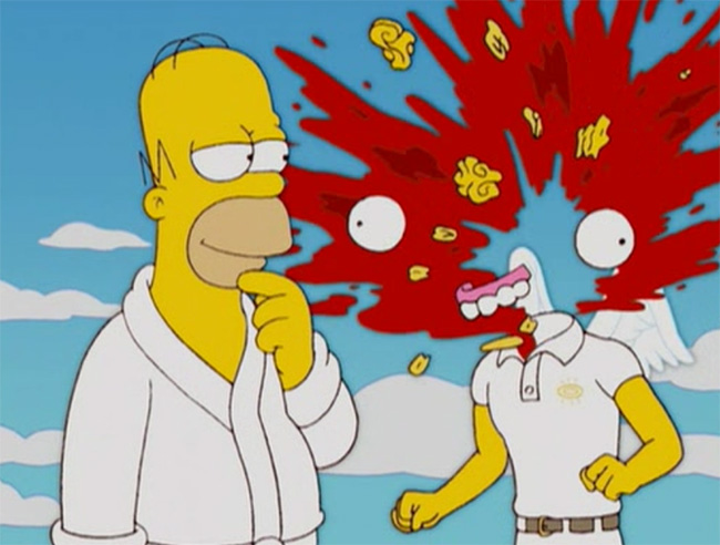 - No paraíso Homer é recebido por um anjo, que lhe diz que a melhor coisa lá é o fato de se conseguir imediatamente tudo o que desejar. (adivinhem a 1ª coisa que Homer desejou...)