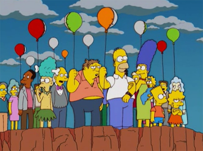 Como todos os habitantes estão no rumo do mal pois estão obcecados em pegar a salvação, todos vão até onde Homer indica (Rochedo Mesa de Springfield) mas nada acontece. Depois, ele faz o cálculos novamente e indica um novo horário mas ninguém mais acredita nele — nem a própria família — então vai sozinho para o local.